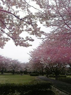 桜の木がたくさんある公園で、満開をちょっと過ぎたあたりで、たくさんの花びらの絨毯ができあがっていて、風がふくたびに花びらが雪のようにふわふわ舞って、とても綺麗でした。